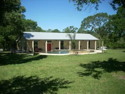 Great location for a secluded weekend retreat! Large living area for entertaining or relaxing along with a pool with a built in hot tub! Also bring your horses! Has a 72x12 barn with 5 stalls and another 30x50 barn with 4 stalls (could be 6) w/tack room. Is currently a one bedroom but is designed to be expanded with more bedrooms from an additional 900 sq ft open area. Porches on the front, back and side make a great place to sit and watch the horses and wildlife! Has a large pond for fishing!