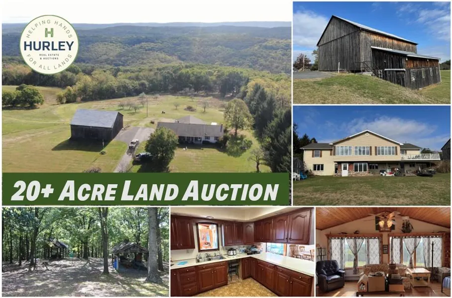 20+ACRES Near RAYSTOWN LAKE for PUBLIC AUCTION at 13677 Piney Ridge Rd, Huntingdon, PA 16652 on Nov 20, 2025 at 4PM. Spacious 3 BR, 2.5 bath, dining area, LR, (2) sunrooms, finished walk-out basement w/ wood stove, workshop, & cold storage, oversized 2-car garage, large bank barn & multiple pavilions. Abundant wildlife & stunning views of the surrounding wooded land. Just 4 miles from Seven Points Marina & Boat Launch!