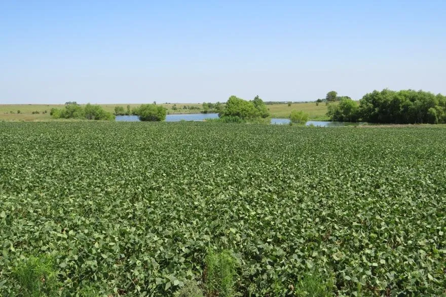 This farm, 200 acres, more or less, consists of approximately 87.5 acres native grass CRP, 54 acres upland cropland, with the balance, about 59 acres, being grassland and waterways, with a large pond. There is a good water well near the middle of the farm. The cropland and CRP land soils are mostly gently and moderately sloping Crete silty clay loam, along with some areas of Hobbs bottom land. The CRP land has had terraces and waterways in place for many years. The large pond is deep, and was constructed for optimum fishing and waterfowl hunting.