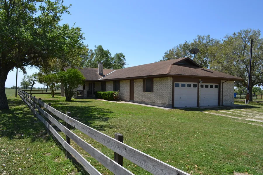 Description: Lush grasses, hydrating stock tank and picturesque gentle sloping terrain make up this Oak Tree filled pasture with ranch home and barn. Includes livestock pens, water cistern, barns and storage buildings, covered entertaining patio and good white tail deer and white wing dove hunting. Improved pastures with exceptional fencing.