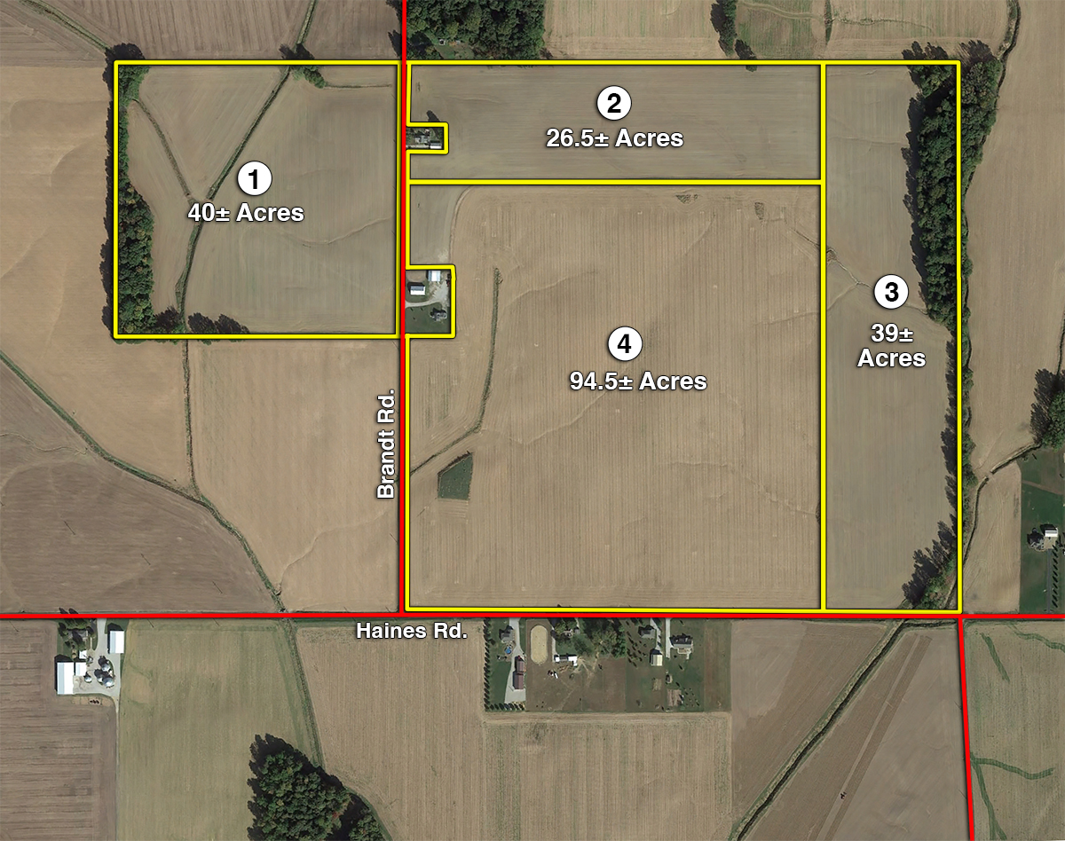 Tract 1: 40 AC; 36.8 tillable acres; frontage along Brandt Road