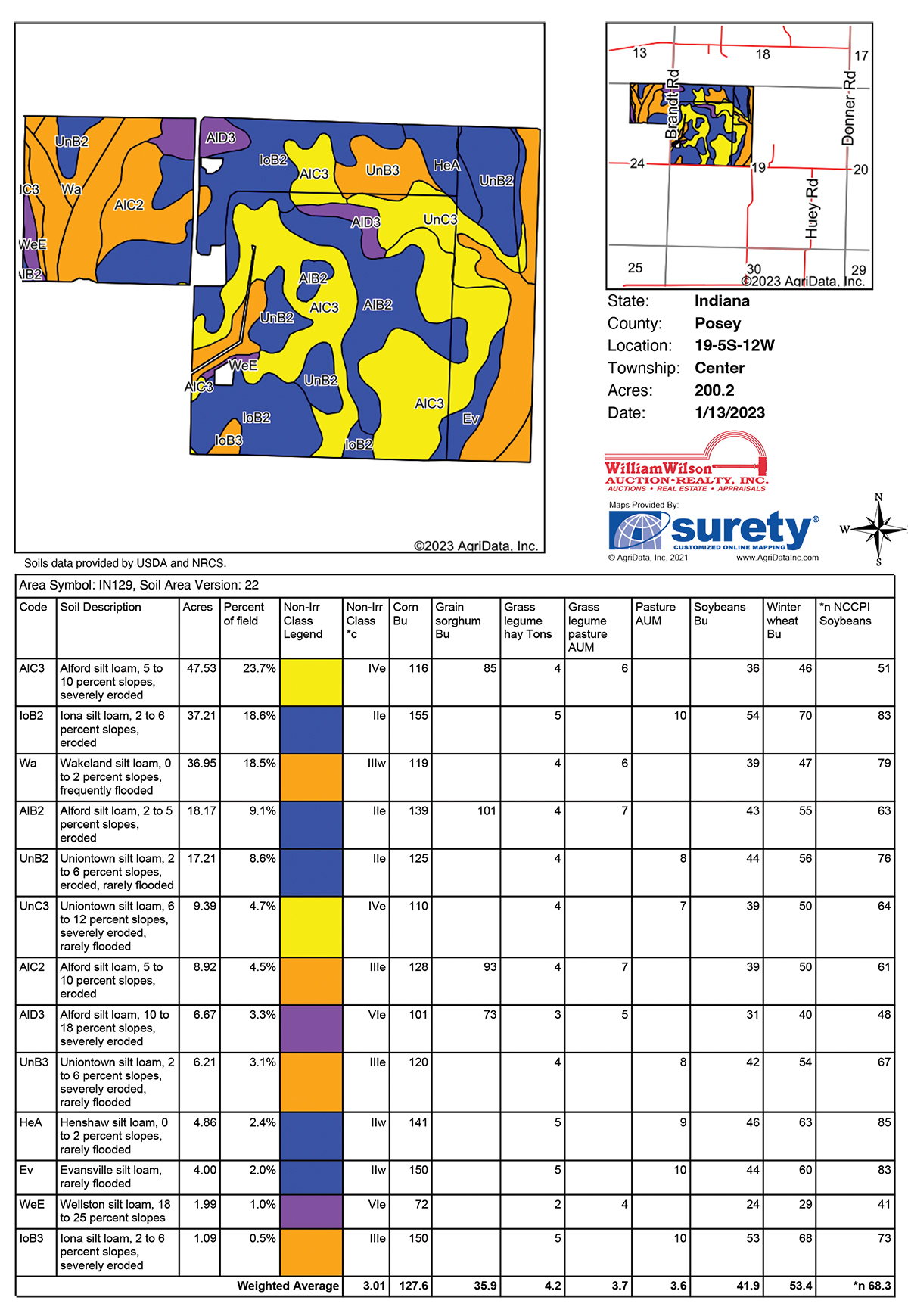 PROPERTY LOCATION: Located in Sections 19 and 24 Center Township, Posey County, Indiana, 2.5-miles south of Wadesville, Indiana/Indiana State Road 66, along Brandt and Haines Roads. Watch for signs.