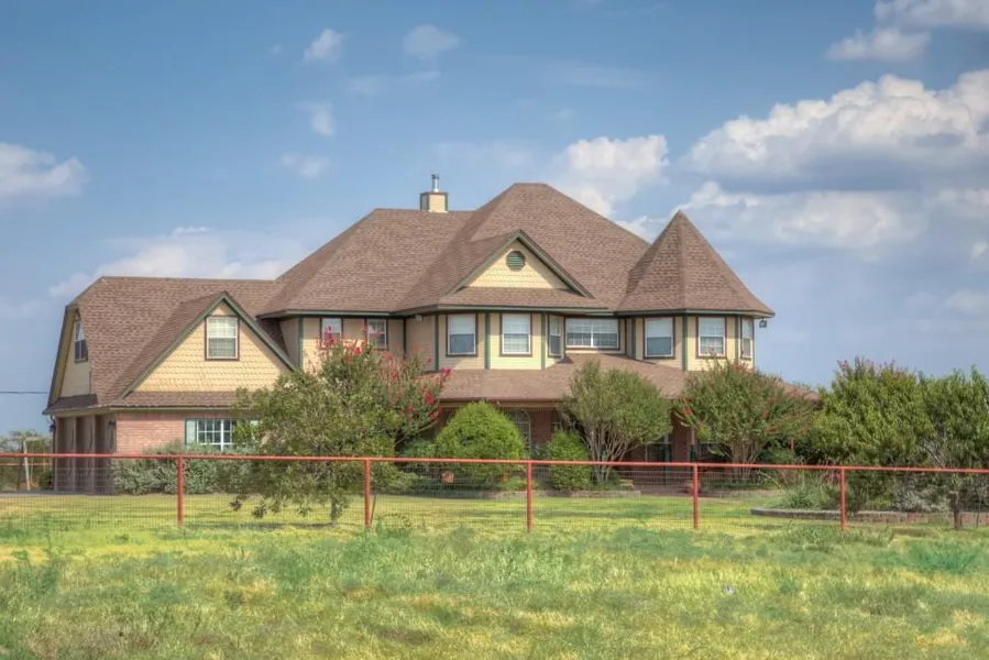 Sitting on 20 acres only 25 miles from Ft Worth, beauty & serenity abound in this charming country property. Gated entry with pipe fencing in the front, concrete floored shop, equipment barn with covered trailer or RV parking, small horse barn, large pasture with stocked tank; House has a wide front porch, updated kitchen and baths, family room open off kitchen & sunny breakfast room, study, 2nd living room upstairs, free-form pool overlooks pasture and pond.