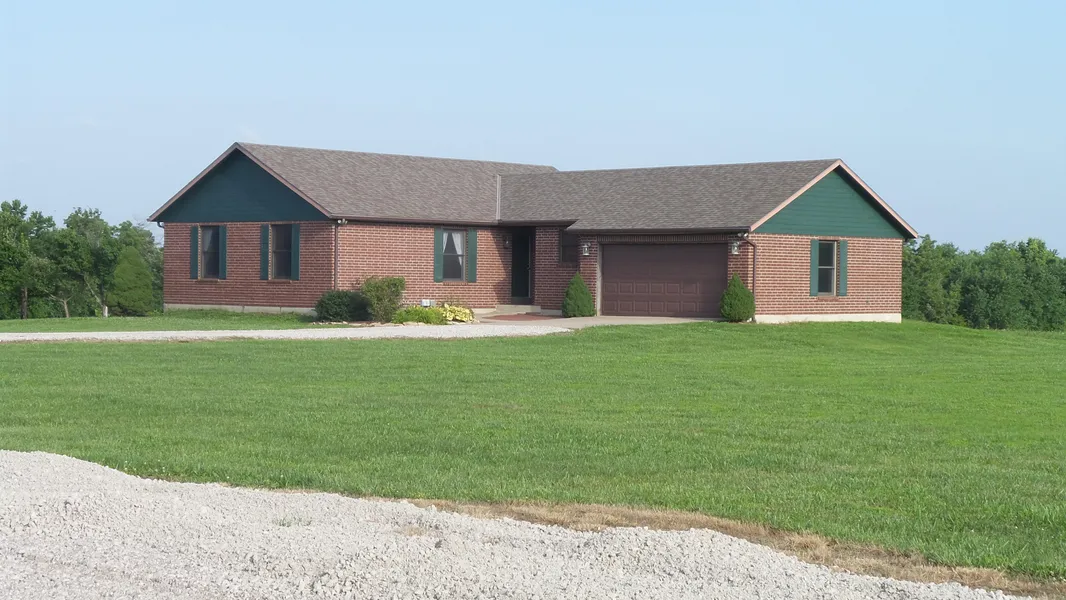 Hunter's paradise - watch the deer and turkey from the walls of windows! Secluded setting 1/2 mile off the road. 3 bdrm, 2 ba brick ranch. Beautiful new granite countertops & carpet. New vanities & tile in bathrooms. Eat-in kitchen w/ built-in stove top, double oven, & hrdwd floors. Woodburning fireplace. Full basement w/ 10" walls is stubbed for bath & ready to finish. Storm shelter, large patio, 30x48 horse barn, & 24x32 hay barn. 2 ponds & 35 acres of cropground. Apple, peach, & cherry trees. Lots of wildlife! MLS #2001667
