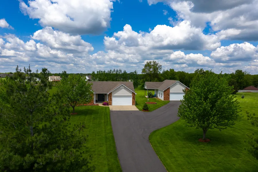 This home is the Perfect Package! 3 Bed/2 Bath home with 46x24 insulated outbuilding on 3+/- acres. The large kitchen and dining area feature stainless steel appliances, Silestone countertops, breakfast bar, ceramic tile, pantry & plenty of cabinet space. Atrium doors lead to the newly refinished 22x12 deck perfect for entertaining and enjoying the views of the expansive back yard. Spacious great room is open with vaulted ceiling, real mahogany hardwood floors & beautiful brick fireplace ideal for cozy gatherings or enjoying quiet evenings at home. Indulge yourself in the master bedroom suite with sizable walk-in closet and master bathroom featuring jetted tub, new shower, new vanity, his/hers sinks, ceramic tile and more. Other comforts include the main floor laundry and 2-car oversized garage with cabinetry and workspace. The insulated outbuilding has heat, electric, 18x8 garage door, side-entry door, covered patio and more. High-efficiency heat/cool. Blacktop frontage. For additional information, please contact Bret Martin at 314-581-3990.