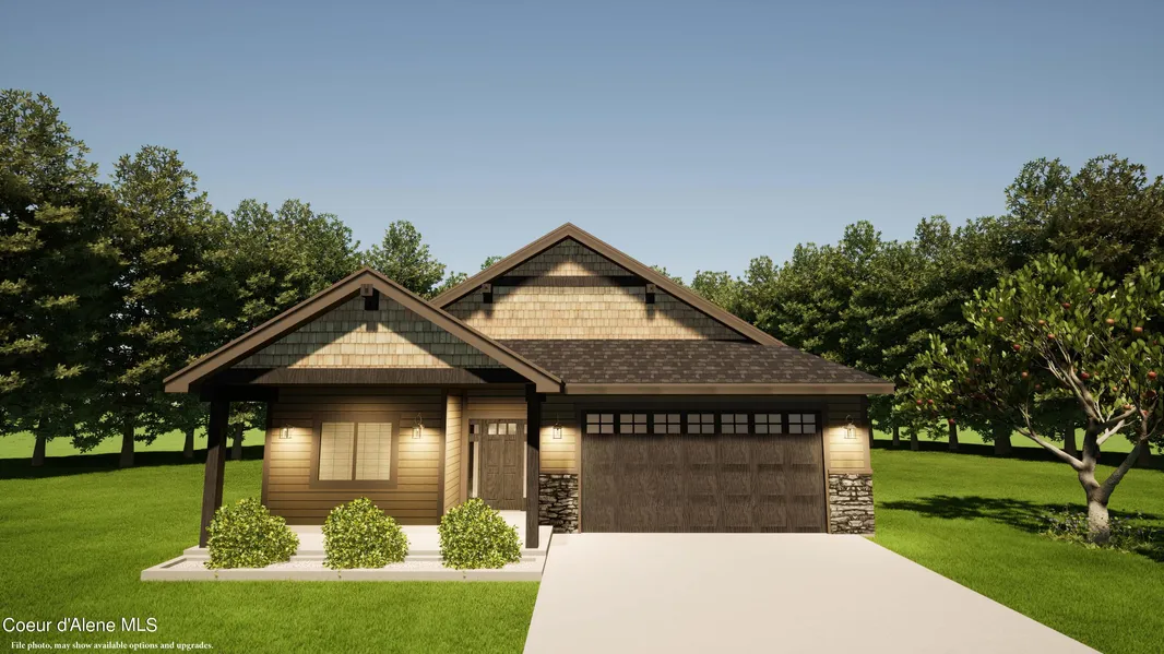 The beautiful Verte Glenn project is underway. This floor plan is designed to be functional and open, with an abundance of natural light. The house spans 1,564 square feet and features three bedrooms and two bathrooms, making it perfect for both comfortable living and entertaining. The exterior is made up of high-quality materials, including a stained and lacquered knotty alder entry door, Pella windows, fiber cement lap siding, cultured masonry stone, covered front porch and entryway that is over 18 feet wide, wood grain insulated garage door, an oversized attached 2-car garage, a 12' x12' patio, and more. Inside, the great room boasts vaulted ceilings, while the rest of the house has 9' ceilings and oversized trim. The custom Huntwood cabinets in the modern kitchen are spacious, and the kitchen itself features stainless steel appliances, an island with an eating bar and pendant lights, a walk-in pantry, and quartz or granite countertops and backsplash. The living, kitchen, dining, and hallway areas are floored with LVP. The primary suite is private and fitted with dual vanities, a linen closet, a walk-in closet, and quartz or granite countertops and backsplash. You have the option of personalizing your home by choosing either the Northwest or Craftsman style build, as well as from a wide range of finishes, options, and upgrades. The location of the house is exceptional, and shop lot options are available.