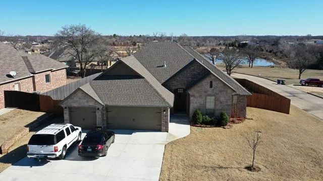 Nestled among Lakewood Estates' exquisite neighborhood full of mature trees and community pond lies a luxurious 5 bedroom, 3.5 bath home that also boasts a dedicated office. Master suite is located downstairs with 2 additional bedrooms, while upstairs, also has a suite and additional guestroom. Located on a corner lot with wood privacy fence, you can enjoy your backyard and covered patio and soak in the lovely, uninterrupted views of the gorgeous pond and landscape. Top of the line, open concept kitchen with two ovens, 3 car garage, storm cellar, sprinkler system, storage galore and many more upgrades.