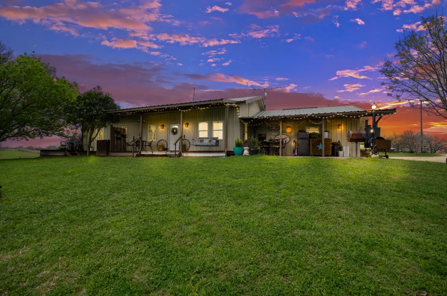 Country life is calling! This fantastic 4 bedroom, 3 bath home, with an office that could work as a 5th bedroom, is nestled on 202 acres. Open concept living room, kitchen and dining room with vaulted ceilings, wood laminate and tile flooring throughout, and 2 utility rooms and 2 HVAC units. The master bedroom boasts a walk-in closet and its own access to the back porch, perfect for enjoying a morning sunrise as you watch the deer graze. The property not only has a great barn for horses but it also has a separate guest-quarters perfect for that short-term visitor. Texas weather is unpredictable and this property is prepared with a storm shelter installed in 2017.