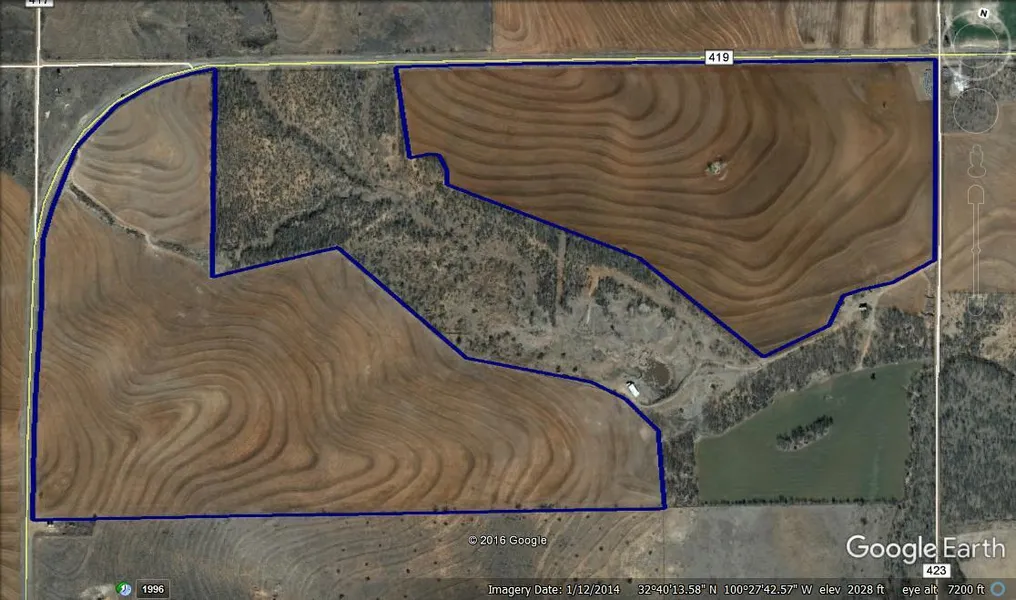 203.47 acres in 2 tracts with frontage on FM 419. Comprised of active cultivation with paved frontage along the north and west sides. Partial fencing in place. Electric and water service are accessible. Tract 1 contains 87.87 acres. Tract 2 contains 115.6 acres. May be subdivided. Potential for agricultural use for farming or grazing as well as homesite options with paved frontage, utilities and easy access to town. Available now for only $1,100 per acre!