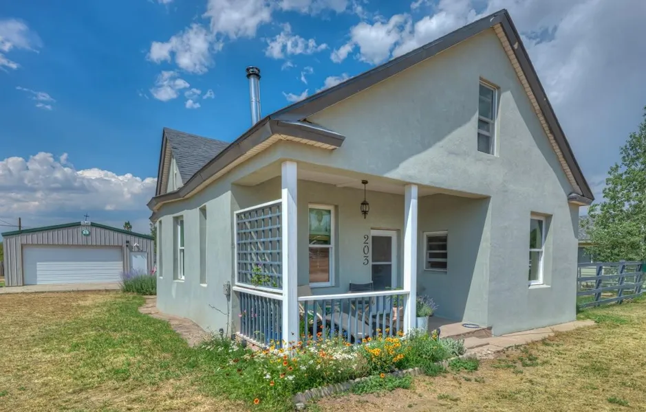 Glorious Views! Nicely updated home 1 block walk from downtown La Veta. You won't believe the view. Look south across a field for unobstructed open views of the Spanish Peaks a rare view for in-town property. Newer roof, windows and Stucco at this 3 BR/1B home with many extras. Cleary garage, patio, butcher-block countertops, nice window coverings, great wood floors, nice kitchen fixtures, and more! A perfect blend of small-town charm and natural splendor in this meticulously maintained property. The spacious living areas perfectly balance functionality and aesthetics. Enjoy your morning coffee on the private porch with those spectacular mountain views. The Cleary garage provides secure parking plus valuable storage space. Furnishings are negotiable. This one won't last so call today!