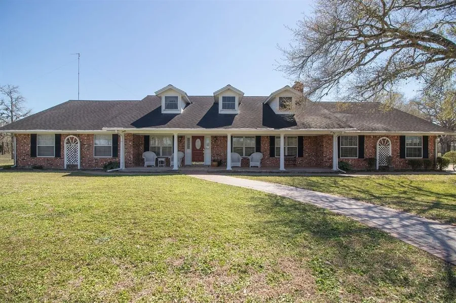 12.25+ acres of Central TX landscape at its finest. 3/2.5, 4,047 SF colonial front home, from the minute you enter the property you will see COUNTRY AND ELEGANCE! Updated home eludes quality w/built-in's throughout, crown moldings, wainscotting, beamed ceilings, custom kitchen cabinets (soft close), granite countertops, recessed lighting, beautiful chandeliers, breakfast bar, wet bar, formal dining area, and so much more. Master bath w/jetted tub, walk-in shower, his/her closets. Sunroom stretches across the back of the home with view of the huge pond (stocked) with pier for fishing. Property is fully fenced and the yard surrounding the house is fully fenced with wrought iron fencing. Property has a barn with pens & storage shed. Cattle guards at the driveway entrance off Hwy 90A and at the driveway for the home's garage. Also, available for purchase is a nice 1189 SF house on 1.837 acre...