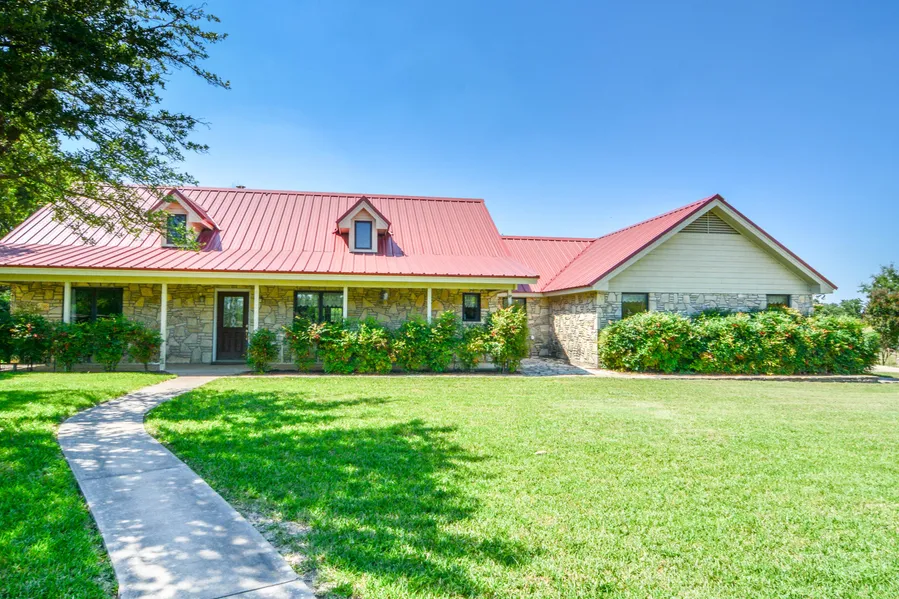 Gorgeous rock home on acreage w horse facilities! Beautiful in-ground pool & landscaping, horse barn w 4 stalls, tack room w bathroom, hay storage, implement shed, & arena! Home has been completely remodeled & includes a custom kitchen w omega cabinets, stainless appliances, & granite counters. Imported honed slate stone on some floors, game room, & guest suite above garage. Wonderful pipe turnouts & 2 full tanks. Incredible place for the money!