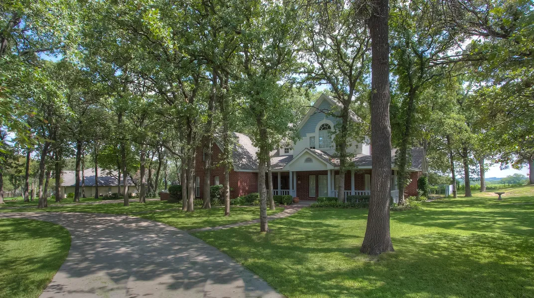 Beautiful 3 bed 2.5 bath home in Oakwood Estates North on a wonderfully treed lot. Circular front drive, Large wrap-around front porch, open kitchen and living area, downstairs master with a sitting area, large flexible room upstairs for living room, bedroom, or game room. Large sunroom on the back of the house looks over the large backyard and neighboring ranch, side entry 2-car garage, additional separate 2-car garage/shop and covered RV parking. Buyer to verify schools, taxes and measurements