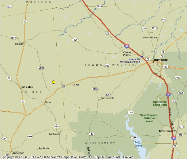 Research Parcel InformationFrom Huntsville, (intersection of IH 45 and S.H.30) follow S.H. 30 West, towards Bryan/College Station, for 17.5 miles to County Road 228, turn right and follow C.R. 228 for 1.5 miles to 90 degree right hand curve in C.R. just before the curve turn left to entrance to property.