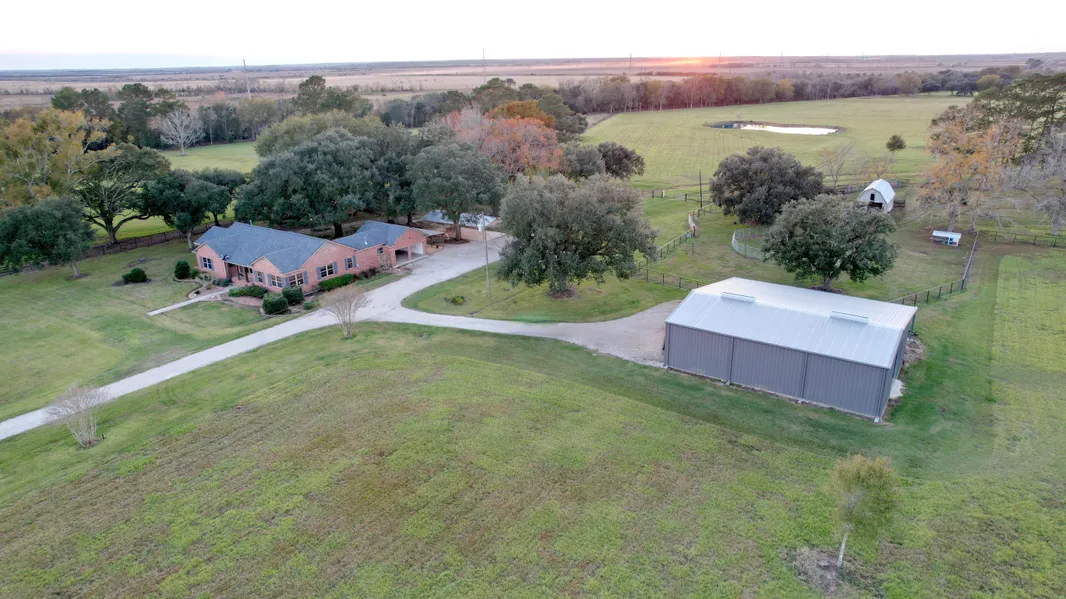 Welcome to the +-168 acre Ace In The Hole Ranch. This gentlemans ranch has everything you could ask for within an hours drive of Houston. The 2,621 sqft, 3 bedroom, 2 bath brick home is accented by hardwood flooring, copious amounts of natural lighting, large open rooms, and surrounded by majestic live oak trees. The 40x60 concrete floor shop with 3 roll up doors has ample space for all your equipment storage, or projects and there is plenty of overflow space in the 20x60 lean-to. No worries about loss of power with the 20 KW Kohler generator which supplies power to both the home and shop. There is a 16x32 barn that sits adjacent to the cattle working pens, round pen, and turnout for your horses. Need to relax after a day's work? Throw your fishing line into the beautiful pond that is stocked with perch, catfish, and bass or sit back and watch the deer that frequent one of the two wildli...