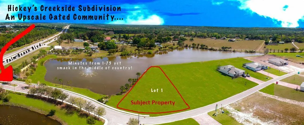 Here it is! The best lot in the beautiful Hickeys Creekside subdivision, a small exclusive subdivision of only 24 home sites. This is Lot #1surrounded by water on two sides and featuring a spectacular water fountain just outside your side windows and back door! This location is also just across from the Hickeys Creek frontage and boat ramp and mail box center. 22 of these home sites have been purchased by DR Horton, who is doing a fabulous job of building quality homes in this deed-restricted community. The private road is gated for security and privacy. What a great location for work or play in serene Alvawith a short drive to downtown Fort Myers or easy access to I-75 only 10 miles away. THIS IS A LOCATION YOU WILL LOVE TO COME HOME TO!