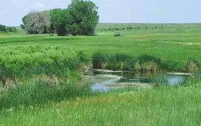 Terrain: Elevations range from approximately 3,800 feet to just over 4,000 feet. The terrain is generally gently rolling and sloping descending to several good spring fed creek bottoms. One creek bottom has a very productive sub-irrigated native hay meadow. Much of the country has a fairly open appearance, with scattered cottonwoods along the creeks and only scattered mesquite.