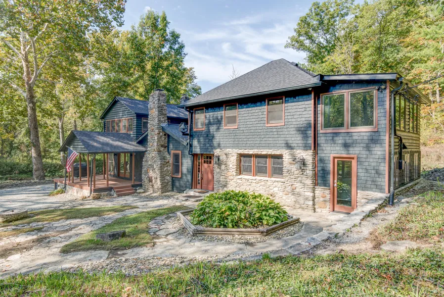 Exquisite Modern Lodge Retreat. 21.3 secluded wooded acres on dead end road joins the Versailles State Park and borders the Grand Loop mountain bike trail. This completely remodeled home overlooks Laughery Creek and is built for entertaining. This incredible home features gourmet kitchen with unique live edge island, granite counters, and upscale appliance. From the kitchen you can enjoy guests in the open concept dining, living, and family room areas. Unwind in one the home's two master suites each with stunning views of Laughery Creek.