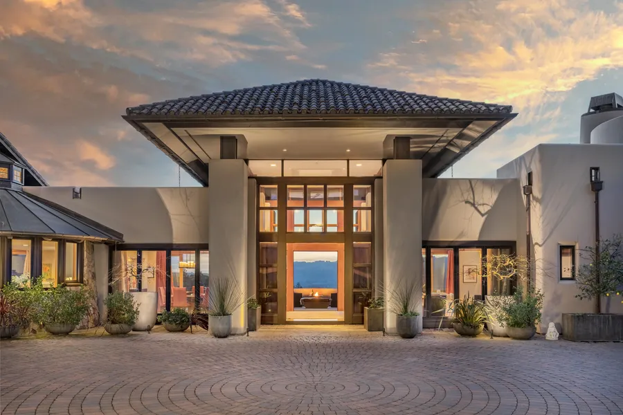 Magnificent 22 acre estate just above Sonoma Plaza. Wine country views from 7,000 sq.ft. residence, private 1 bedroom, 1 bath guest house and grounds. Superior construction, sophisticated design: 23' ceiling entry hall, floor-to-ceiling walls of windows and glass doors to full length, covered entertaining terrace and patios with alluring, curved infinity edge pool. Professionally installed 1.5 mile trail through grounds with trees, orchard, olives, 150 Zinfandel vines. The main residence features 3 bedrooms, 4 full baths, 2 half baths, gym with full bath/steam shower, 2 theatres, 1,000 bottle wine cellar, tasting bar, 2 offices. Beautifully updated kitchen with 2 islands open to family room with fireplace and open 2 story ceiling. Solar, generator, ample water, gated, fenced, parking court. End-of-lane serenity near town, and only 1 hour from San Francisco.