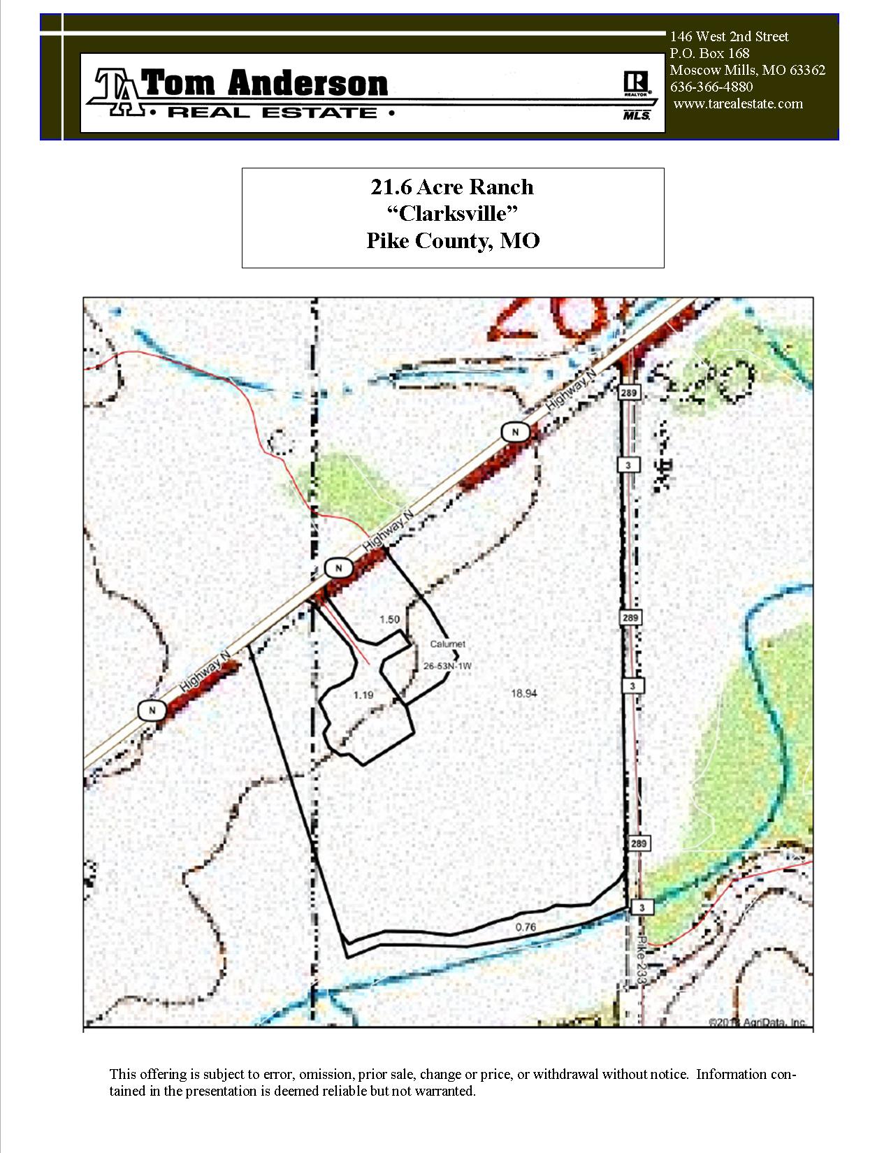 Research Parcel InformationFrom St. Charles County: 61 North to Eolia, to right on Highway D to Calumet, to Right on Highway N, 2 miles to property on right.
