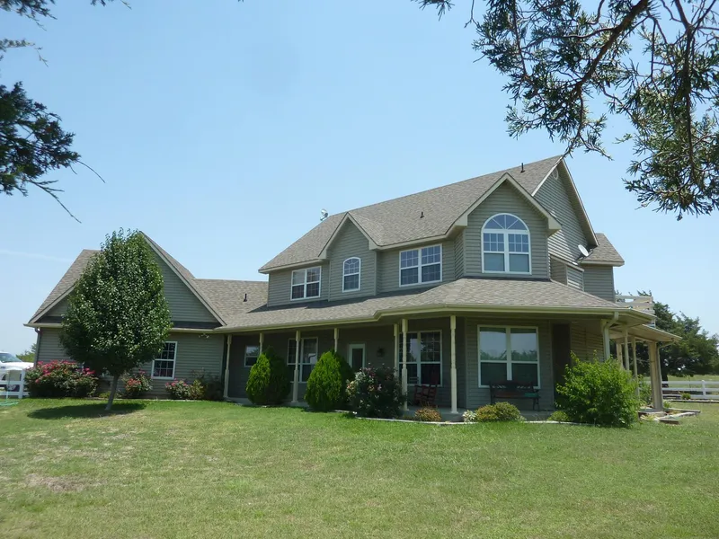 Welcome to the country...21.73 acres SW of Trenton, TX - bring the kids, start a garden, raise your animals and livestock. Very nice landscaped country-style home with wrap-around porches to enjoy the view. Large family room with a fireplace, kitchen/breakfast area with island and double ovens. Roomy master with a fireplace, sitting area, dual vanities, walk-in closet and balcony. Back outdoors is a 36X36 metal barn with 3 stalls, storage area and 36X18 lean-to for additional storage. Acreage is cross-fenced for livestock with 2 loafing sheds; chicken coop, goat pen, pond and hay field. A great family property.