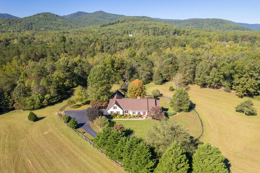 22 acre country retreat with great views of Buck Mountain in Farmington Hunt Country. Rural paradise, yet only 22 minutes to UVA and 15 to plentiful shopping and dining. Walk to Glass House Winery. Optimal functionality for horses and dogs with ten acres of fenced pasture plus stone dust riding ring. Two stall barn and luxurious indoor/outdoor dog kennels and wash station. Forest with stream and open fenced fields. Mature, cedar lined, paved driveway is a scenic drive to the large home with first and second floor master suites, massive living room with wet bar, and indoor /outdoor living spaces are fantastic for entertaining. Separate living quarters in the walk out basement with full kitchen and more. You can't beat this Western Albemarle location.