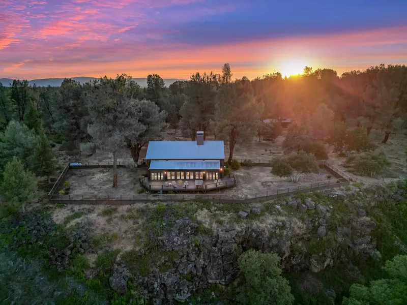 Uniquely located on an exclusive bluff looking down upon the very private Rising River and Hat Creek. This custom-designed off grid, log home on 20+ acres overlooks the valley below offering stunning views of the Rising River, Hat Creek, Rising River Lake and the valley below. Originally designed by William Turnbull Jr., an American Bay Area architect whose unique building designs challenged the more traditional architecture of California's west coast. The original build was started in 1987 and was purchased and finished by the current owners in 2015. A visit is necessary to fully appreciate the special opportunity this property offers. Upon entering, one cannot help but be impressed by the understated elegance and craftsmanship. A close look reveals vaulted tongue and groove ceilings and a magnificent 'walk-in' sized fireplace with custom crafted steel doors that glide open and closed providing an unbelievable cozy and inviting ambiance. At almost 2600sf the home manages to be simple, intimate and elegant all at once with private nooks and alcoves. One will love the gourmet kitchen with Wolf Range, Ceasar stone counters, soft-close cabinetry, and farmhouse sink. So many special nuances you really need to look closely to grasp it all. High end modern LED lighting throughout the home that can be computer-controlled to establish preset personal preference lighting levels. A few features include Redwood encased windows and doors, interior copper sprinklers, extra thick slab granite counter tops in the primary bath and a glass walled shower. The clerestory windows enhance natural lighting and the radiant floor heating runs throughout the homes' slab flooring, providing ultimate underfoot comfort. Wall-to-wall windows and doors to the south fully encompass the incredible views that very few will ever get to enjoy. This property is ideal for privacy seekers, nature lovers or those searching for a serene retreat. The panoramic view from the rear deck overlooks the rivers, and valley below making the bald eagles and osprey your companions. There is an additional barn structure that could easily be renovated into additional guest housing, if desired. Currently providing several stalls and turnouts. This property is fully fenced, with off-grid solar power system with a backup generator. To enter the property one must travel through BLM ground and is surrounded by large acreage parcels.