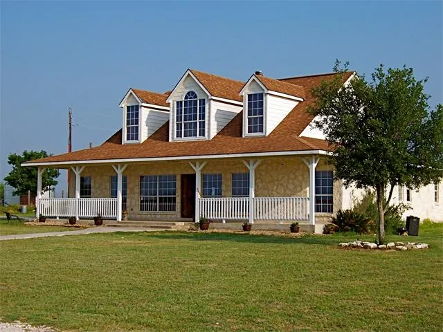 BRING THE HORSES to this 3BD/2BTH 7 year old, white rock, hill country style home on 21.98 acres w/ office, faux paint treatments, stained pine trim throughout the house, solid core knotty pine 'Mission Doors' and a 12' high rock walk around fireplace with huge mesquite mantel and custom wood blinds. Horse facilities include 100' x 200' pipe arena, turnouts, 70' x 50' stud pen with shed, and 25' x 18' tack barn. Property is all coastal with huge oaks and has dog kennel on slab, storage building, fire pit & more. Price Reduced!