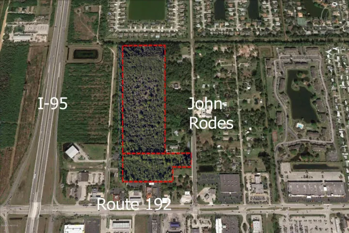 This 15.54 parcel attaches to an additional 5.9 acres parcel (tax ID:2800703), forming 21.44 total acres. Property is zoned 9908 - Vacant Residential Land Multi-Family, Unplatted. Water and Sewer are available. The smaller parcel has frontage on John Rhodes Blvd. which would be the preferred point of entry. Conveniently located minutes from I-95 and shopping. A short commute to large employers Harris, Grumman, hospitals, etc. Minutes from Melbourne & Orlando International Airports. Proposed development for a 285 multi family residential community, see attached documents.