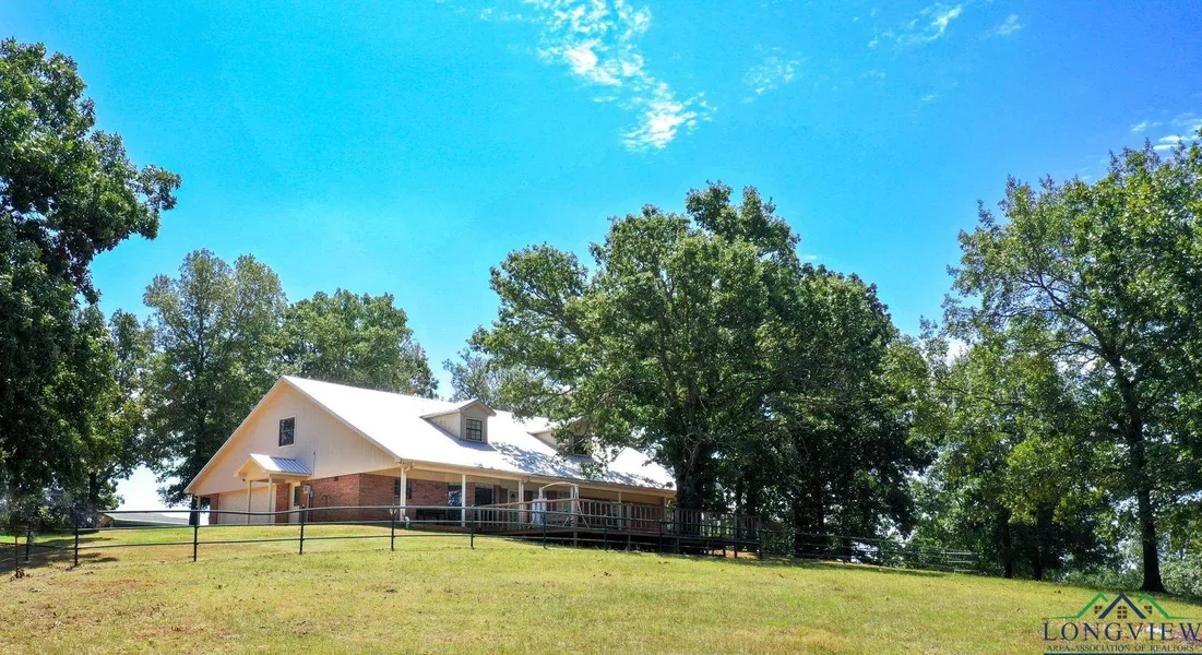 Captivating views, storybook oaks, true East Texas tranquility. Welcome to your home on one of the most coveted hills in Cass County. Serenely tucked away in the treetops on 21+- rolling acres, this beautiful brick 4 Bedroom, 3 Bath boats a thoughtful and spacious two story layout. Gather in the large living room under a soaring wooden cathedral ceiling where natural light pours in from the front bay windows, showcasing the fresh paint and flooring. Toast with friends and family from the kitchen/dining space offering plentiful cabinetry and countertops with even more dazzling panoramic views of the Pines. The master suite boasts a tray ceiling, and custom made barn doors add rustic and functional flair. The homes upstairs portion houses an enormous yet cozy room with massive closet spaces for ultimate storage options. Built-ins can be found in abundance throughout. A meticulously handcrafted 1920 sq ft rustic retreat at the back of the property is an ideal investment rental opportunity or mother in law suite. Shining cedar lined walls, cabinetry, and ceilings throughout the 4 Bedroom 3 Bath homestead create the kind of show stopping veneer that rural travelers and/or long term residents crave. More perks of the property can be found outdoors including a great deck for stargazing, useful storage buildings, and fencing. Covered pens and garden space make this the perfect sustainable farm/ranch combo to grow food and raise your own livestock. The seller currently has a commercial gravel operation along the north end which conveys to buyer and could possibly generate a great return on your investment. This is a one-of-a-kind find so dont wait!