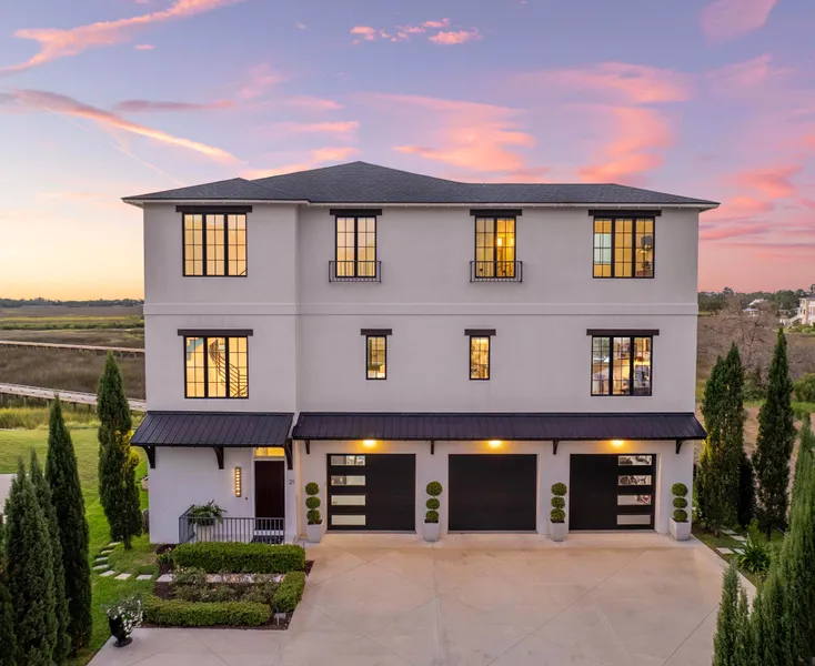 Imagine your very own private resort in a gated mid-island enclave. This striking modern contemporary home showcases eye-catching tile selections, dramatic design elements, and a kitchen worthy of a magazine spread. Everywhere you turn, there’s something to capture your attention—whether it’s the soaring ceilings, walls of glass framing stunning views, or the thoughtful finishes that set this property apart. Spanning over 4,400 sq ft, the open and light-filled layout includes 5 bedrooms and 5 baths, with generous living and entertaining areas inside and out. The chef’s kitchen features high-end appliances, custom cabinetry, and a large island designed for hosting. A wet bar, elevator, and oversized garage with space for up to 5 vehicles add convenience and function. Outdoor living is a true highlight, with a pool, outdoor kitchen, and firepit area. Multiple porches on both levels overlook the surrounding beauty, and boating enthusiasts will appreciate the private dock—shared with only one neighbor—complete with water and electricity. Whether envisioned as a full-time residence or a private vacation retreat, this property delivers the ultimate island lifestyle. For a virtual tour tap the VT icon or visit: