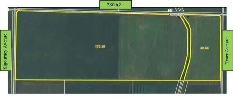 210 acres, m/l, with 200.9 crop acres and a CSR of 80.5.