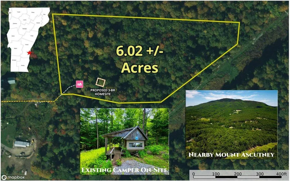Setback at the end of a private right-of-way, this 6.02 +/- acre parcel offers a peaceful and private homesite for a proposed 3-bedroom home in the quaint Vermont town of Weathersfield! With excellent proximity to year-round recreational opportunities, imagine your dream country home located just 5 minutes away from the town trailhead to Mount Ascutney and less than 30 minutes away from the Okemo Mountain Ski Resort. The property conveys with a state-issued wastewater permit for a proposed home tucked away in your private woodland with a utility pole less than 500' away. With a gently sloping topography, the proposed homesite sits at the height of the property. A roughed-in driveway off the right-of-way to the property leads to a small clearing that features an old recreational camper and surrounding structure to be sold in as is condition. It is our understanding that the camper is conn...