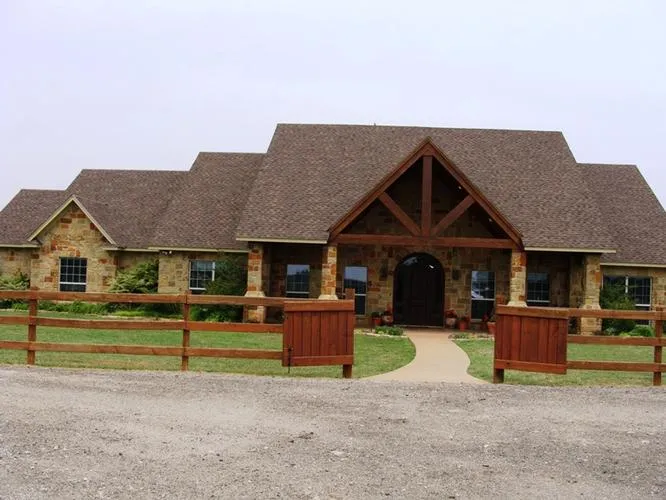 A 3,200 sq. ft. 4 bedroom, 2.5 baths, 2 car garage Sandstone home with a conventional roof. A large living room with a 20’ cathedral beamed ceiling, 20’ wood burning sandstone fireplace, built-in stained hickory cabinetry complete with large tv, surround sound, tile floor and arched stone doorways. A beautiful kitchen with same tile floor, silestone (like granite) counter tops, large island with pot rack, eating bar with stone front, designer tile backsplash,KitchenAid, GE & Frigidaire stainless steel appliances and stained cabinetry. An adjoining breakfast room with tile floor and windows. The master bedroom is carpeted with bay windows and a step up ceiling. An adjoining master bathroom with a tile floor, jetted tub with above window and hidden tv, separate large glass & satin tile nickel framed shower, two marbled vanities and a large closet. Pretty foyer with an arched wooden front door surrounded by glass & wood. Dining room with tile floor. Game room with tile floor, step up ceiling & stone door ways. Study with carpet, three large windows and heavy textured walls. 2nd & 3rd bedrooms with carpet. Jack & Jill bath with separate vanities and tub / shower combination. The laundry has a tile floor, stained cabinetry and a stainless steel sink. A home detail sheet is supplied by the owner. Beautiful front and back covered stained concrete porches with tall stone columns and cathedral ceilings with cedar beam trusses. Beautiful pool with flagstone coping, aggregate decking and extensive landscaping. An all steel & stone concrete floored shop 30x50 with blown-in white foam insulation and an adjoining 20x50 overhang, stone front, two rollup doors and two windows. A beautiful rustic stone, wrought iron and cedar stave gated landscaped entry.