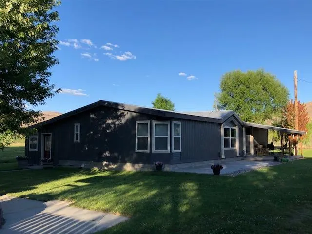 1995 Champion Manufactured home with addition on .32 acres in Juntura, OR. The home is 2340 sq ft with the add-on. There are three bedrooms, two baths, large mudroom, storage area, and a formal dining area. Heating is with a Blaze King wood stove and forced air furnace with A/C. A new metal roof, new paint in 2019, partially remodeled along with a beautiful setting make this a truly nice place to live. A variety of trees, covered deck, and open patio all add to the beauty of this home. Plus, you would have a nice pole style shed with metal siding. A rare find!!