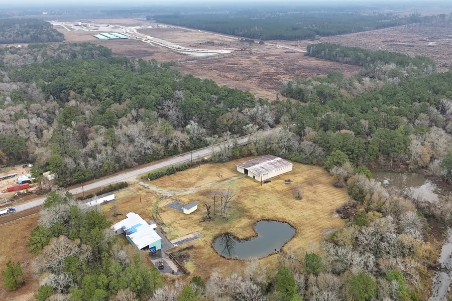 Incredible opportunity on 5.54 acres with 465 feet of frontage on FM 787! This versatile property includes an 8,576 sq. ft. warehouse with 14-ft doors on both sides for large truck drive-through access. Inside, you'll find office space, 1.5 baths with a stand-up shower, a 20x18 tool room, and an additional flex space above for office or storage. The warehouse is equipped with steel pipe shelving along the walls, perfect for heavy storage needs. Also included is a 3,977 sq. ft. former sawmill building, featuring a 255 sq. ft. storage room and an additional 238 sq. ft. of separate storage. The property boasts ample office space A 924 sq. ft. modular home with 3 beds, 2 baths, and a full kitchen, secured by a 6-ft fenced area with lockable access can also be a 3 office option. A retention pond is on site and can double as a fishing pond, and the sawmill's rear metal siding originates from Minute Maid Park’s remodel. A one-of-a-kind investment—don’t miss out!