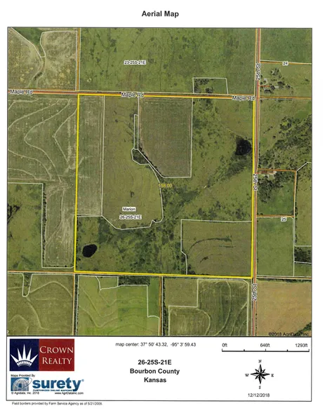160ac m/l, 30 ac tillable w/ production, 47.7ac CRP pays 64 per acre comes out in 2023, 83 ac native pasture 2 ponds, good fence 1 mile rd frontage part of a 480 tract owner will divide. Taxes $ 1390 MLS# 2141703, 913-285-0281 Holt 913-795-4555