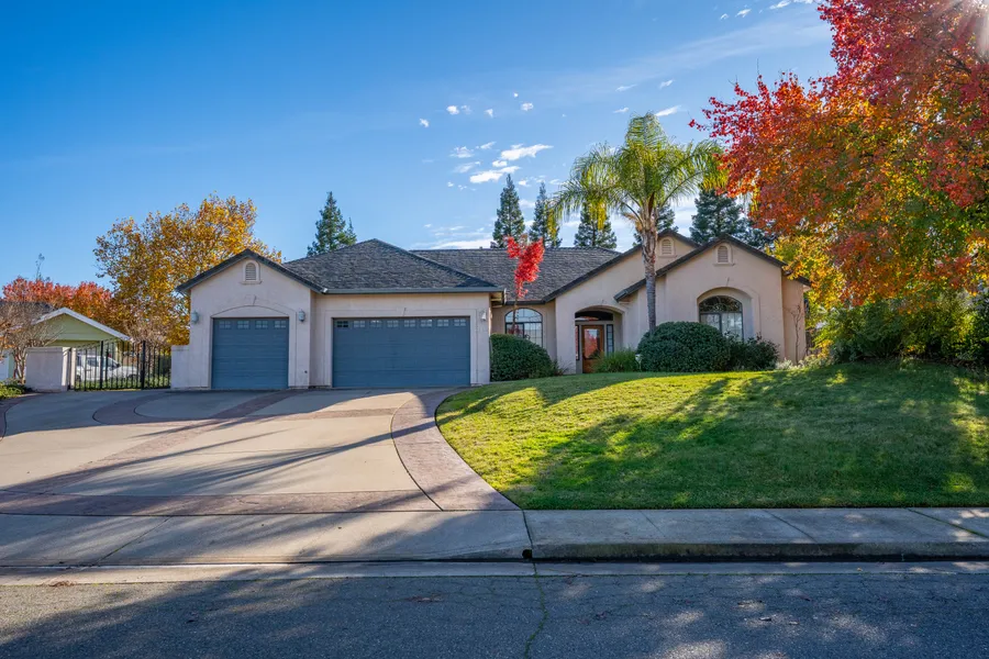 The kitchen features rich wood details and plenty of storage, while the layout flows easily for both everyday living and entertaining. Outdoors, the large backyard is a true retreat—complete with a sparkling pool, diving board, and mature landscaping that provides wonderful shade and privacy.
