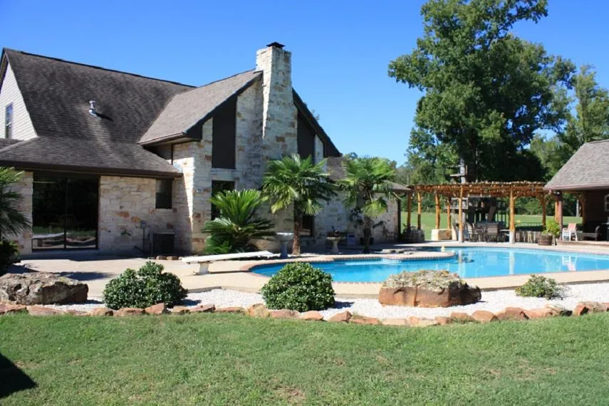 Custom designed home features, 6 bedrooms,4 full baths,3 half baths, granite countertops, SS appliances, walkin pantry, slate flooring, open concept is perfect for entertaining. This home has 2 stone fireplaces, custom master suite & bath. Huge master closet. Ample storage throughout the home. Enjoy the outdoors next to the inground pool or hot tub with half bath and built in grill or around the firepit overlooking the 4 acre lake. 180 acres under High Fence stocked with Whitetail Deer and Easttexas Wild Turkey, 3 additional ponds, 2 creeks (1 yr round)additional 35 acres. A custome tree house for the kids. A 40x100 metal barn with an office and Half bath. Also has a and 1/1 apartment for guest. A diesel generator is in place for emergencies. Private gated entry. This home has too much to mention, motivated seller. Appointment required.