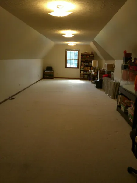 Large cape cod home with room to grow...Lower level rear wall is insulated with walk-out basement and has a raised brick hearth wood burning fireplace. Covered front porch and huge composite rear deck with railing. Pond in the rear with a creek along the rear of the property. Kitchen and dining room have 10' bow windows. Dining room has hardwood flooring. Great room with the brick raised wood fireplace with two sliders going out to the rear multi-level deck. Owner's suite has tray ceiling with a 7' X 7' walk-in closet and 15' X 10' bath with a large corner whirlpool tub and 4' shower. Both upstairs bedrooms have their own full baths. Newer appliances. Utility room is also a half bath. Bonus room 630 sq. ft. Very nicely landscaped.