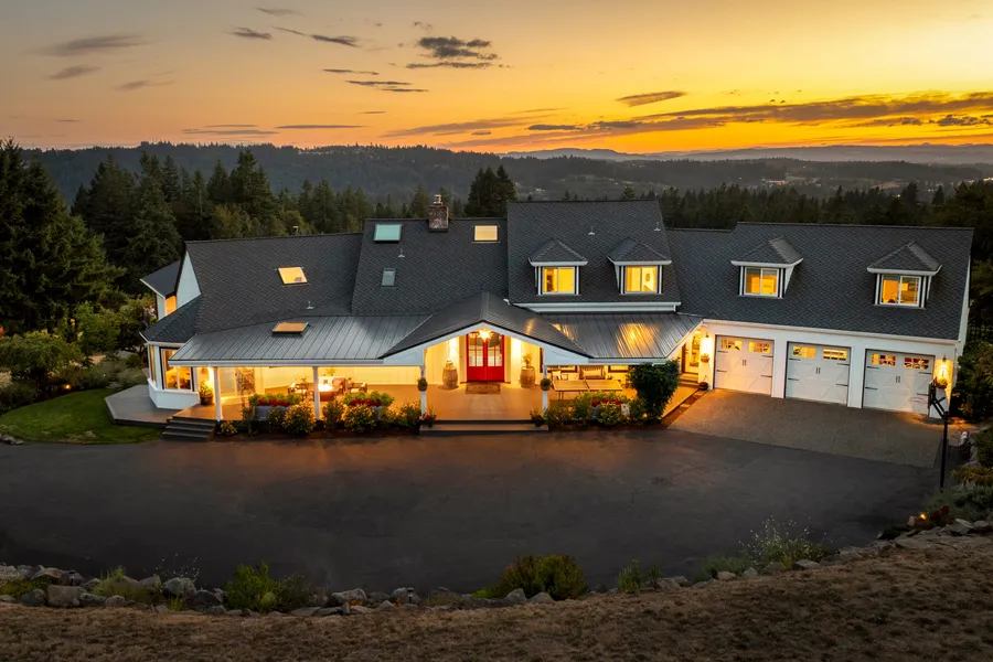 This stunning, one of kind acreage estate sits on 5.71 acres and offers arguably the best valley view you will ever see. City close and country quiet! Enjoy the beautiful vineyard, manicured landscaping, a functional flat field perfect for sports and activities, mature fruit trees, raised garden beds, a charming red barn, a detached studio, two incredible covered decks and a breathtaking custom home that has been completely reimagined. Walk into an expansive main level equipped with vaulted ceilings and walls of windows overlooking the property that produce an abundance of natural light. The open concept floor plan is perfect for entertaining and features a kitchen to dream of. Double island, custom cabinets, high end built in appliances, quartz countertops, a cozy breakfast nook, a walk in pantry, a nostalgic wood stove and more! The show stopping covered deck features beautiful cedar t...