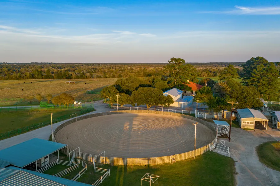 Welcome to the Diamond Spur Ranch. This premier equestrian and cattle ranch is ideally located in Grimes County between Houston and College Station. With its gently rolling pastures, lake, ponds, state of the art equestrian facilities and luxury home, the Diamond Spur Ranch is sure to impress the most discerning buyer. With a covered and open arena, multiple stables & paddocks, vet and breeding station, the ranch is capable of both large scale or hobby horse operations. Stalls are finished with fans, automatic water troughs and fly spray systems. An impressive 6.5 miles of pipe fencing was used throughout the facilities. The recently constructed open concept owners residence is complete with luxury finishes, soaring ceilings, stainless steel appliances and a backyard pool that overlooks the ranch landscape. Four additional guest homes are perfect for managers, trainers or overnight guests. Within an hour from Houston & IAH, the ranch is well suited for both full or part-time living.