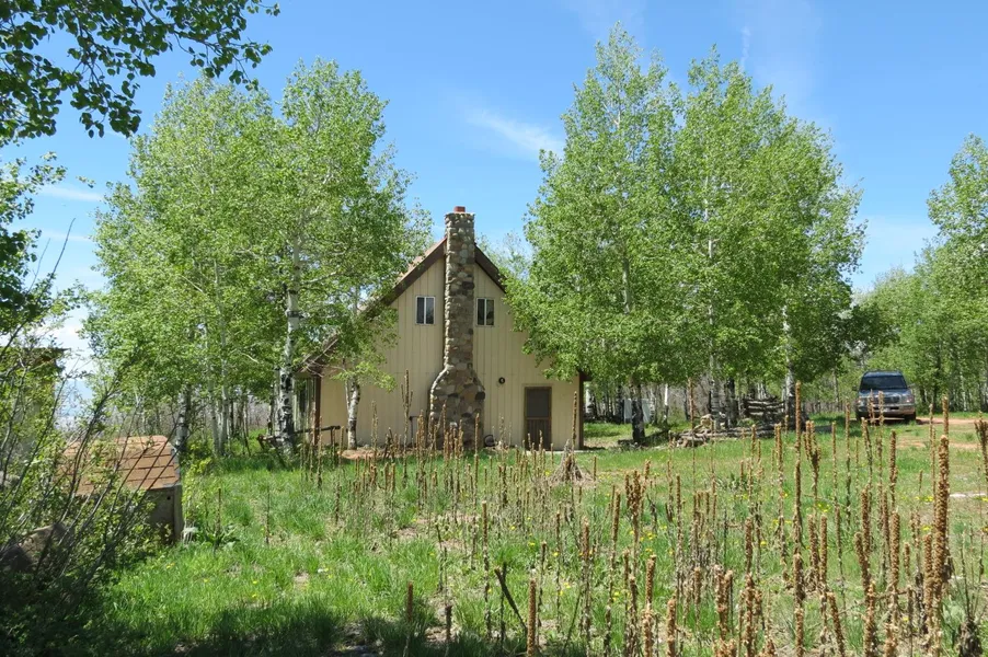 Easy access mountain land. Electricity and well. Lodge and 3 tiny cabins. Aspens, oaks, spruce on the creek. Surface creek for 3/4 mile. Good hunting. 2 miles to the USNF boundary.