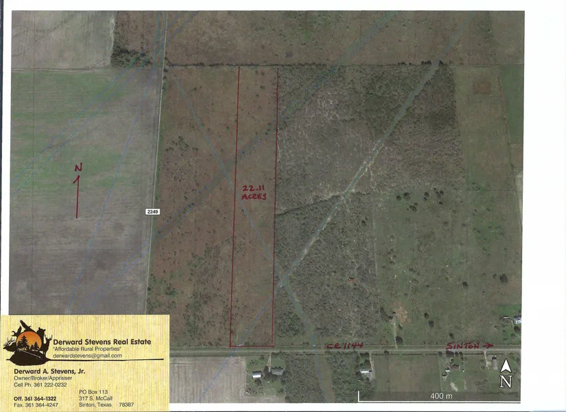 Just Reduced! Rare find close to Sinton. 22.11 acres (357 ft. wide X 2,700 ft deep). Entrance gate on paved county road, 3 sides fenced, former hay pasture with Mesquite and Huisache regrowth. Electricity on paved county road, with rural water (Rincon Water) within extension distance. Country acreage close to city amenities. Small acreages near Sinton don't stay on the market long!