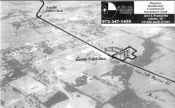 22.38 acres on Hwy-289, Gunter, Texas (across from Gunter High School). Great visibility from Hwy 289 (Preston Road). Commercial site for retail or industrial use. $32,000/ac.