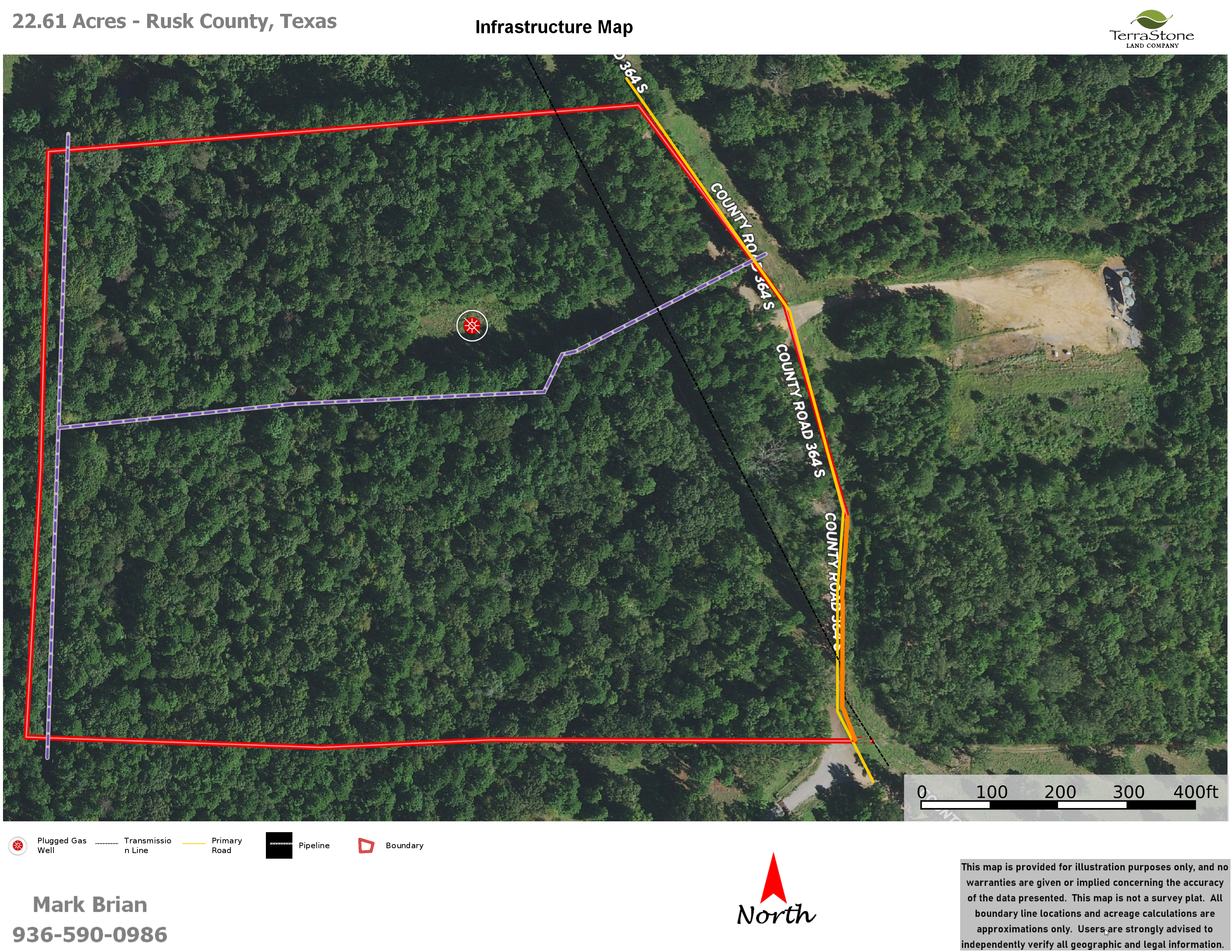 To arrange site visits, please contact listing agent Mark Brian at 936-590-0986, the TerraStone office at 936-590-4909. A registration form will be emailed to you for your review and signing prior to the site visit, and only takes a few minutes on a smart phone or computer. There is a gate into the property on the west side of CR 364S, and access for inspection is available at this location. The lock combination will be provided with the registration. Internal property access to the west side is currently one trail/road into the old well pad and along the pipeline running to the western boundary.