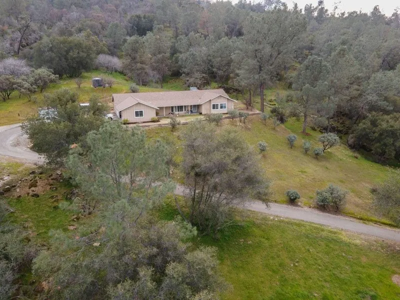 Have you always wanted a ranch home, sitting atop of a hill with views of the hill tops, lights of the city from a far on a clear night? Wait not longer, this beautiful custom and turn key home is equipped with many upgrades. Featuring 3 spacious bedrooms located on one side of the home, with the 4th bedroom on the opposite side, making this a great opportunity for a rental or mother-in-law quarters with it's own entrance and bathroom, this giving it a very private feel. The home also features, hickory cabinetry in the nice size kitchen, a walk-in pantry, and a separate room just for the laundry. There is 3 separate thermostats, along with a whole house fan, ensuring for efficiency at it's best, along with owned solar! This home also has on demand water heater with a water filtration system. The finished garage has extra storage with a pull-down latter for easy access. The home has a second parcel to include an additional 16+ acres of beautiful rolling landscape, bring the horses or keep it untouched to enjoy the extra space and serenity. Also featuring a natural spring and 2 seasonal creeks that run along the property. The home is just on the brink of the Coarsegold zip code, just minutes away from the town of Coarsegold, and giving it a beautiful and easy drive to Fresno, Oakhurst and Yosemite National Park! You will not want to miss this opportunity to live your best life! Call today to schedule your private tour.