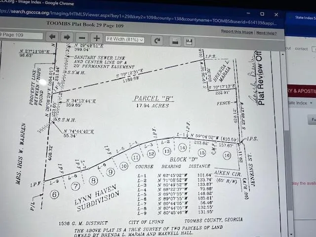 22 acres in the city limits of Lyons. Great location with multiple beautiful home sites and access to Page Lane and Aiken Circle. Build your dream home with plenty of privacy or build a few! Zoned R-1 single family residential. Buyer would be responsible for confirming access to city water and sewer with the City of Lyons. Mobile homes are not allowed.