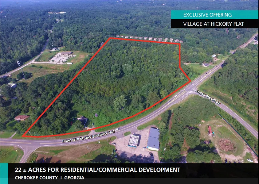 The Village at Hickory Flat is a 22+ acre parcel in Cherokee County, Georgia. While the property is zoned commercial, it offers a unique opportunity for a mixed-use or pure residential development.