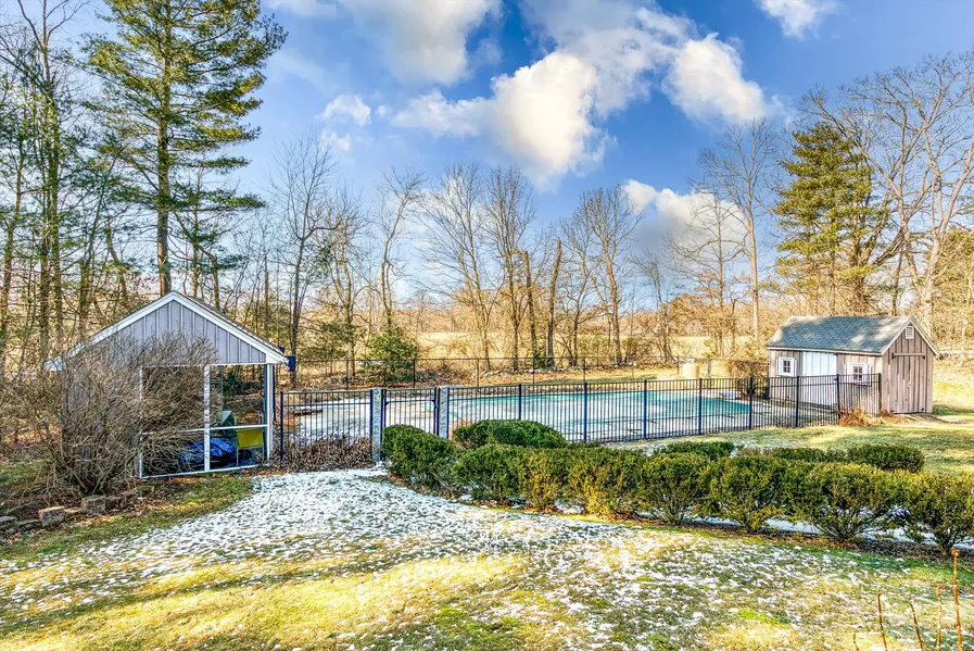 IImagine Vacation at home! Well-maintained 4 Bedroom, 2.5 Bath Colonial in Highly Desired Redgate Estates is perfectly designed for family living today with its open floor plan. Presents a fantastic opportunity to own in Medway, with its top-rated school system! Its upgraded expansive sun-splashed eat-in chef's granite kitchen with a large island, custom cabinetry, and hardwoods leads to a spacious fireside family room with sliders overlooking a private wooded summer “staycation” fenced backyard paradise, with heated saltwater in-ground pool, screened in pool house, patio sitting area, with shed and 2 car garage. Hardwood formal living and spacious dining room, perfect and convenient first-floor laundry allow for elegant entertaining and casual family living. A generously sized primary spa bath, an oversized walk-in closet, 3 additional spacious bedrooms, complete upper level. The spacious finished basement offers convenience, additional family space, and a room for all and the friends.